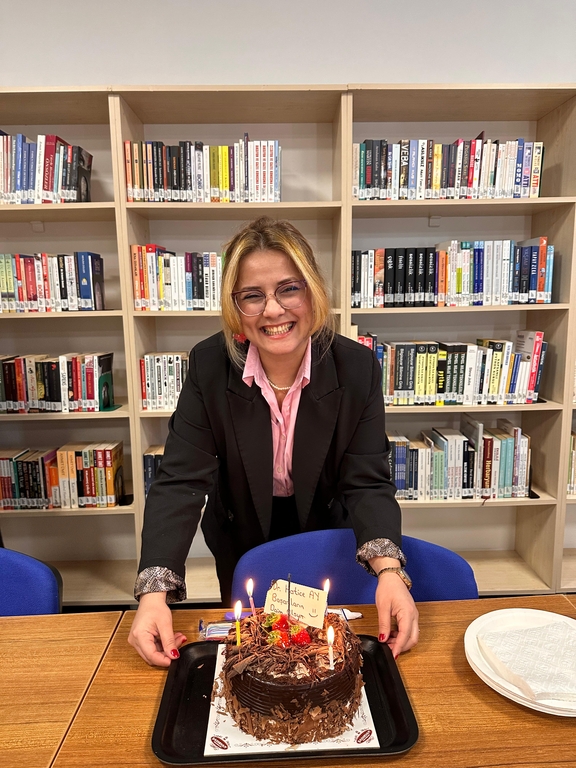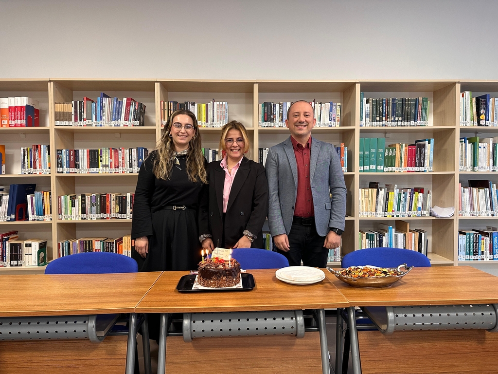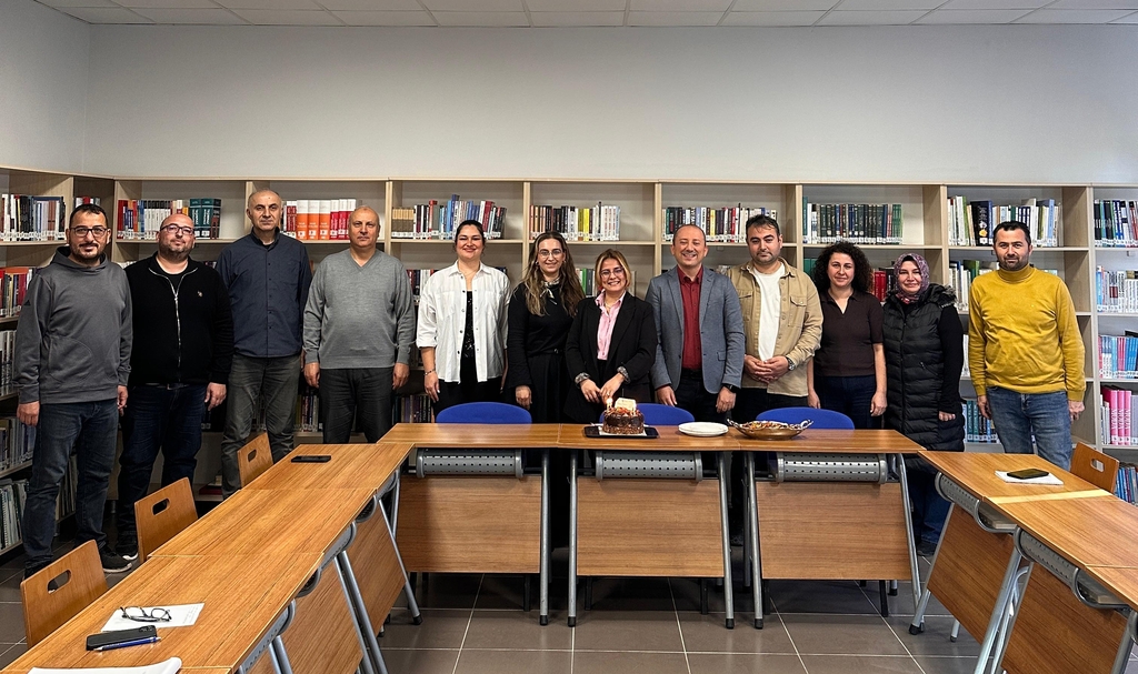 At the end of the meeting, a surprise celebration was organized for Hatice Ay, a lecturer in the Title Deed and Cadastre Program, who recently completed her doctoral studies and earned the title of Doctor. A congratulatory cake was cut in her honor.