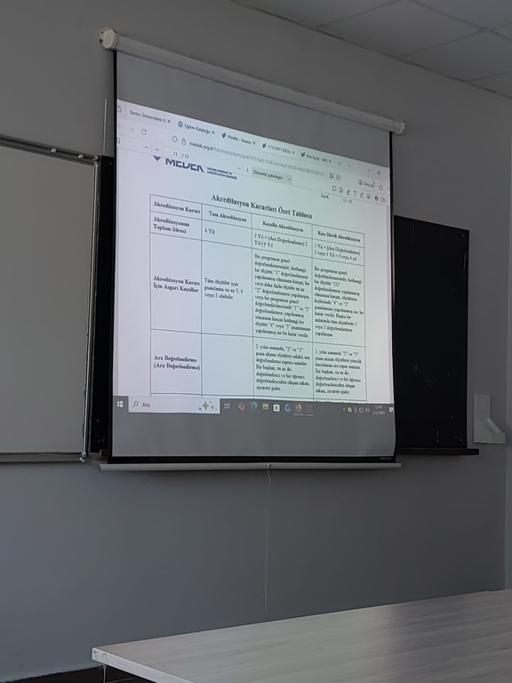 A briefing session was held at Bartın University (BARÜ), Ulus Vocational School to enhance the awareness of academic and administrative staff regarding the processes of the Association for Evaluation and Accreditation of Vocational Education Programs (MEDEK) and to strengthen preparations for the upcoming accreditation procedures.