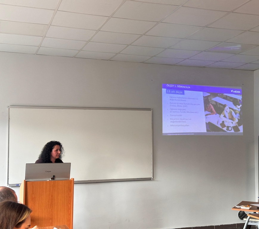 In order to share the knowledge and experience gained during the training and to initiate preparatory activities for the accreditation process, Lect. Hatice Karaca delivered an information session to the academic and administrative staff of our Vocational School on Tuesday, 17 February 2026, at 12:00.