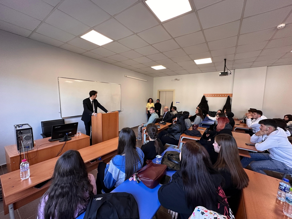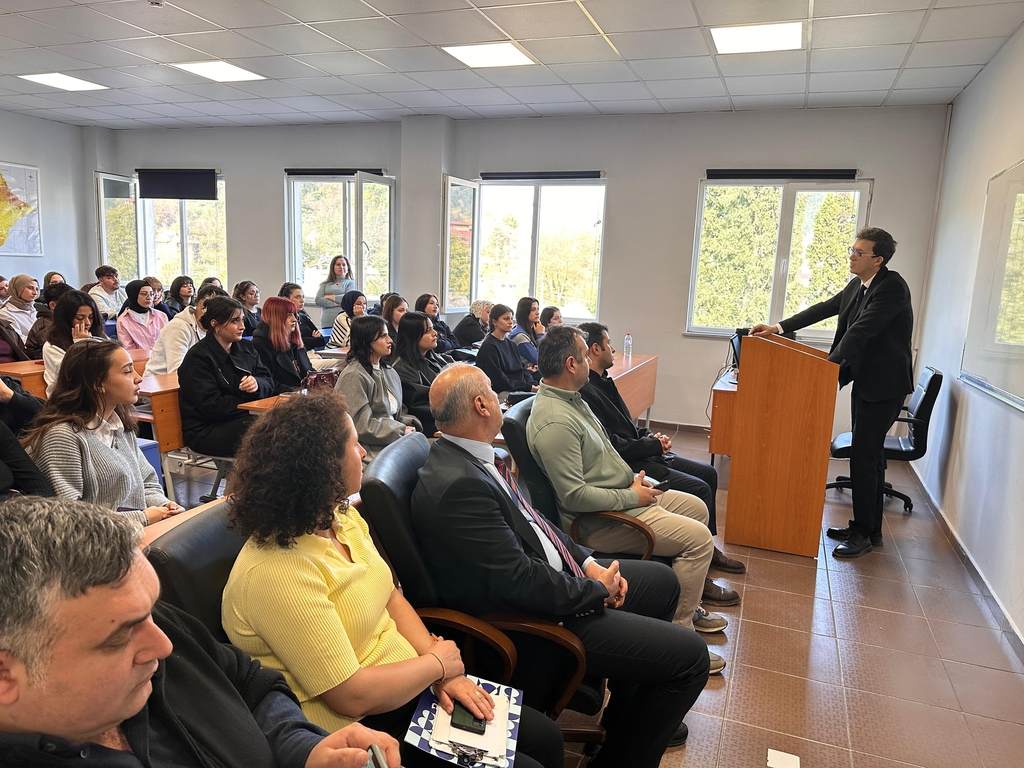 Bartın University (BARÜ), Ulus Vocational School hosted an important guest as part of the twenty-fifth event in its Professional Talks series. Ulus Public Prosecutor Assoc. Prof. Dr. Fatih ULAŞAN met with students and academic staff with his presentation titled “Criminal Awareness in the Age of Artificial Intelligence and Cybercrimes.”