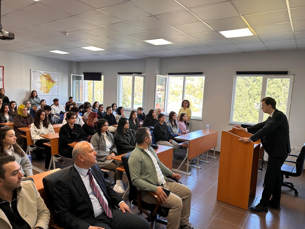 The event attracted significant interest from students, and a question-and-answer session was held following the presentation. At the end of the program, the Director of Ulus Vocational School, Assoc. Prof. Dr. Şükrü Teoman GÜNER, presented a certificate of appreciation to Assoc. Prof. Dr. Fatih ULAŞAN for his contributions.