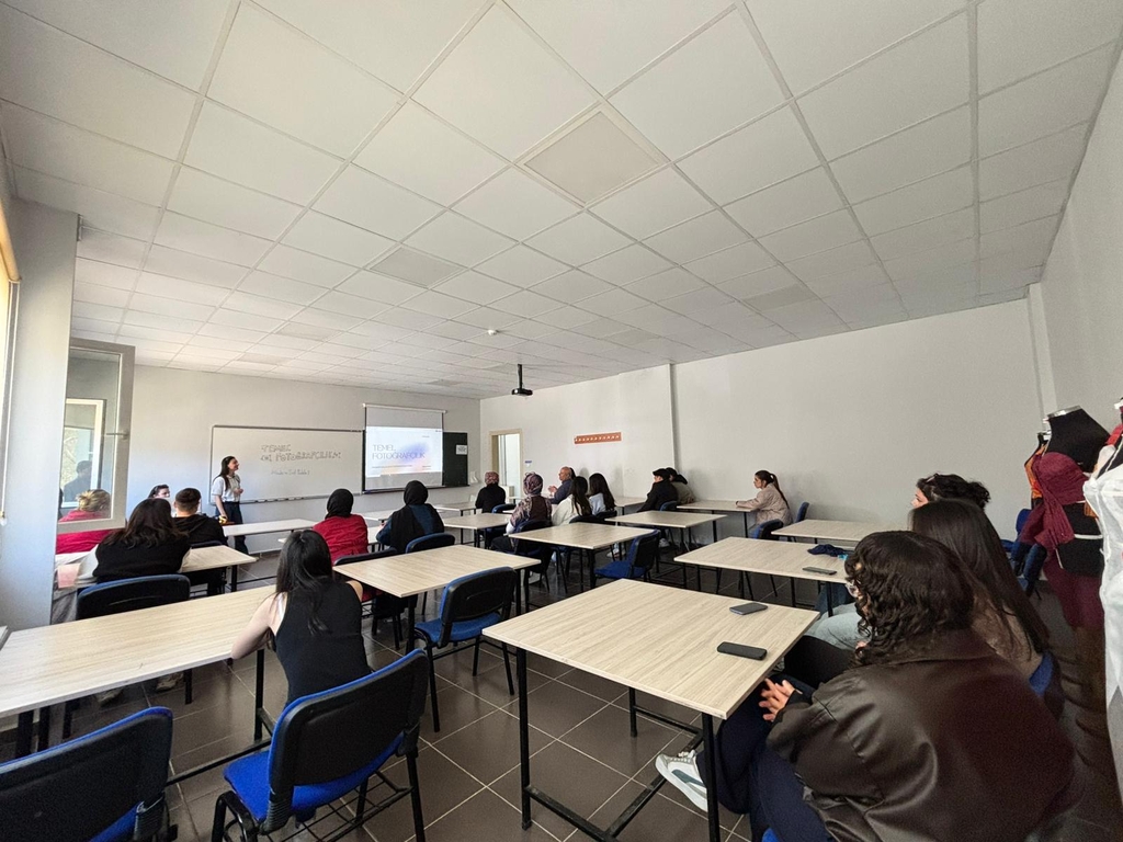 The workshop took place on April 14, 2026, at 11:00 a.m. in the Technical Drawing Hall of Ulus Vocational School. Key topics such as the basic concepts of photography, proper framing, use of light, and composition techniques were addressed in detail. In addition to theoretical instruction, the training was supported with practical applications, allowing participants to gain hands-on experience in photography techniques.