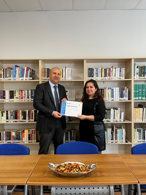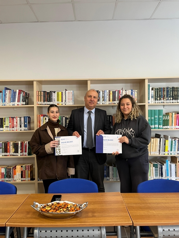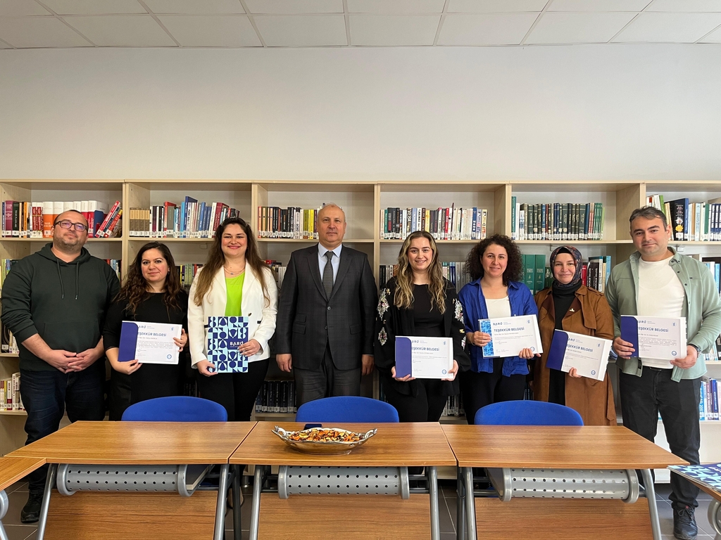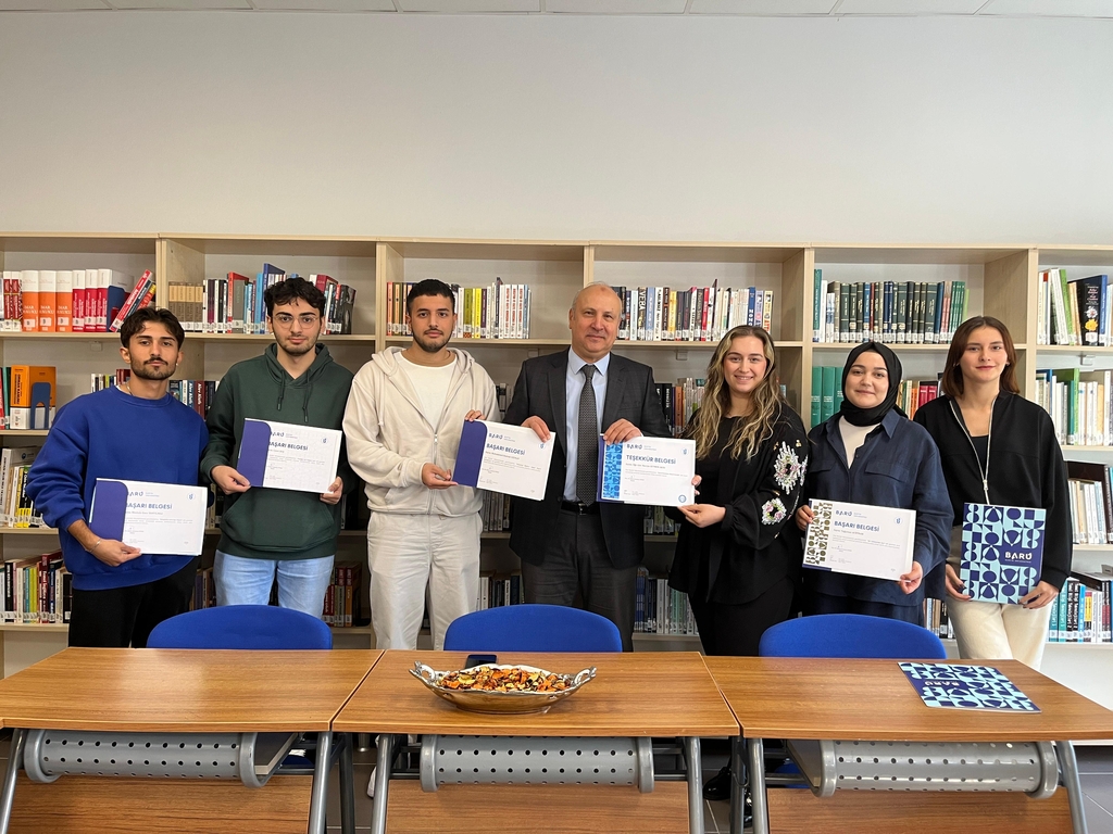 A certificate of appreciation ceremony was held at Bartın University (BARU), Ulus Vocational School, for the project leaders whose studies were accepted for support within the scope of TÜBİTAK 2209-A University Students Research Projects 2024-1 call, as well as for the faculty members and students who took active roles in various social responsibility activities throughout the year.