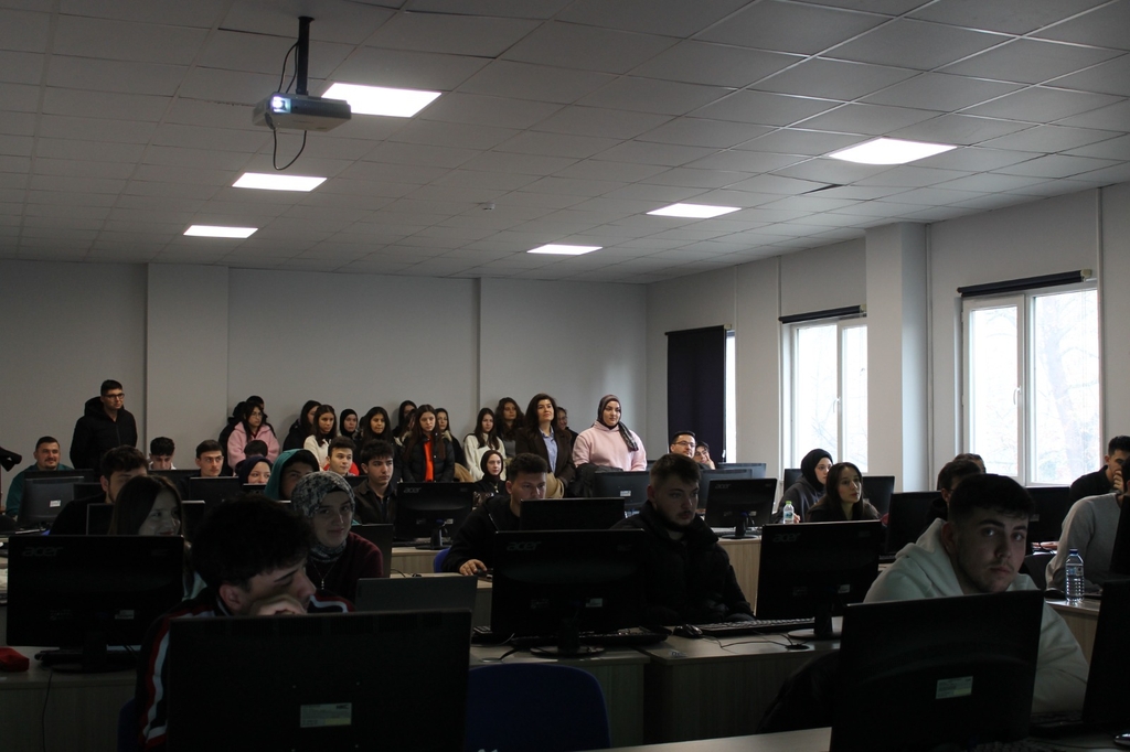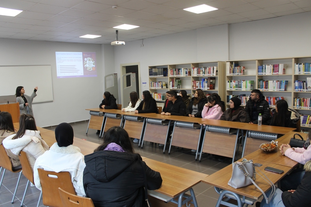 As part of the visit program, an informative presentation was delivered to the students by Lecturer Nurçin Seymen Aksu, Chair of the Unit Social and Cultural Activities as well as Career Planning and Alumni Relations Commission, together with commission student member Livanur Kahraman. The presentation provided detailed information on the academic structure of Ulus Vocational School, its educational opportunities, and practice-oriented training processes.