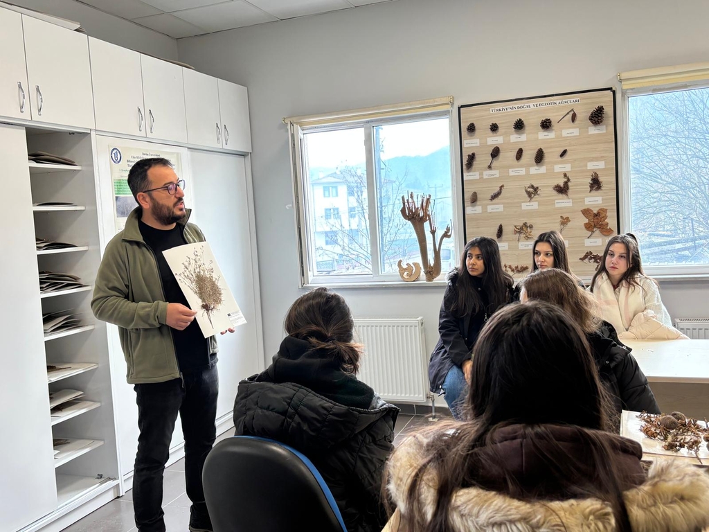 Following the presentation, the students toured the textile workshop, computer laboratory, and plant material laboratory within the vocational school, gaining firsthand insight into the applied training facilities. In addition, various surveying instruments used in the Land Registry and Cadastre Program were introduced, and students were given the opportunity to experience these devices firsthand.