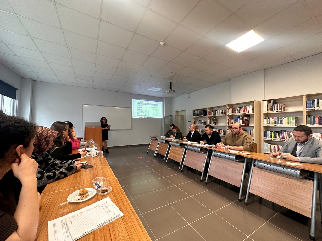 The meeting was attended by academic and administrative staff. During the meeting, a presentation delivered by Lect. Ayşenur Açıkel, a faculty member of the Office Management and Executive Assistance Program, shared evaluations regarding the performance indicators of the current strategic plan, monitoring results, and overall process performance. The presentation also addressed the roadmap for updating the unit strategic plan for the 2026–2028 period, revisions to goals and activities, and measures aimed at strengthening monitoring and evaluation mechanisms.
